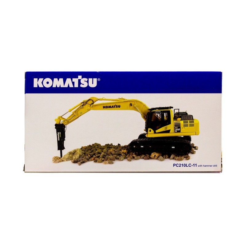 • A faithful reproduction of the Komatsu PC210 LC-11 die-cast excavator with hammer drill from Universal Hobbies, capturing an authentic and impressive look.