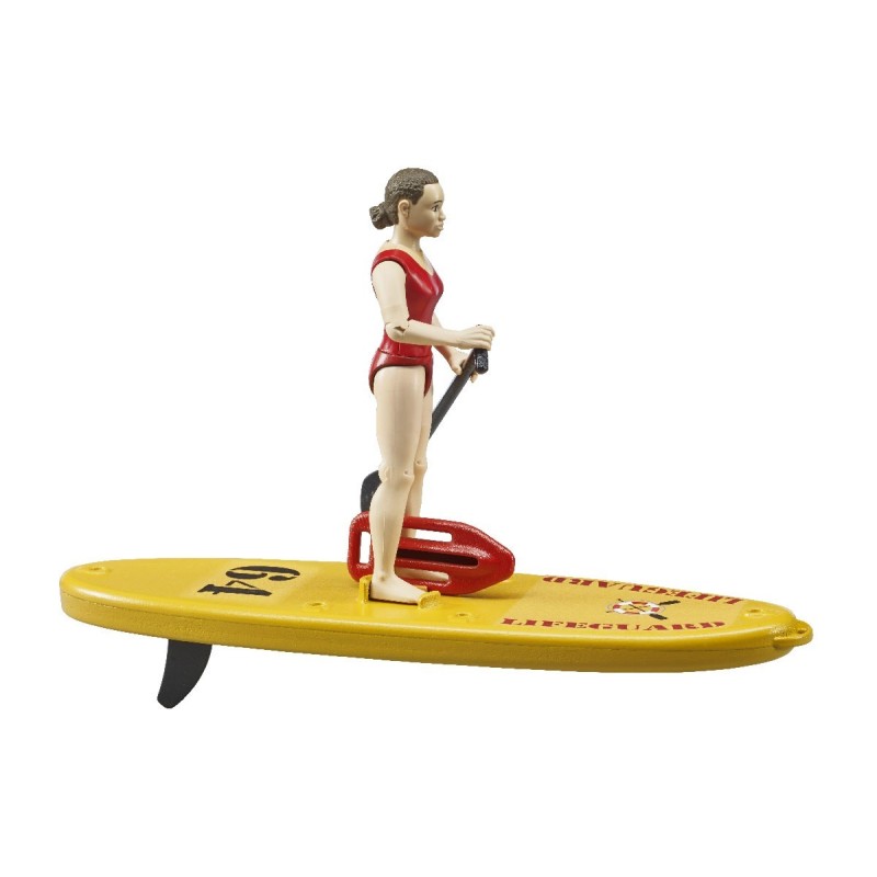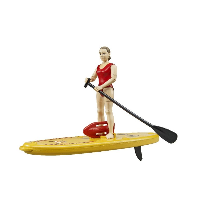 For the increasing number of bworld water sports enthusiasts, the bworld lifeguard with stand-up paddle board is a new addition to the rescue services. Equipped with her maneuverable SUP and rescue buoy, the lifeguard arrives promptly at any hazardous situation on the water. The strong buoyancy of the board ensures safe travel. The bworld kayak with figure (item no. 63155) and the new bworld Lifeguard station (item no. 62780) are particularly suitable additions from the BRUDER water play world.