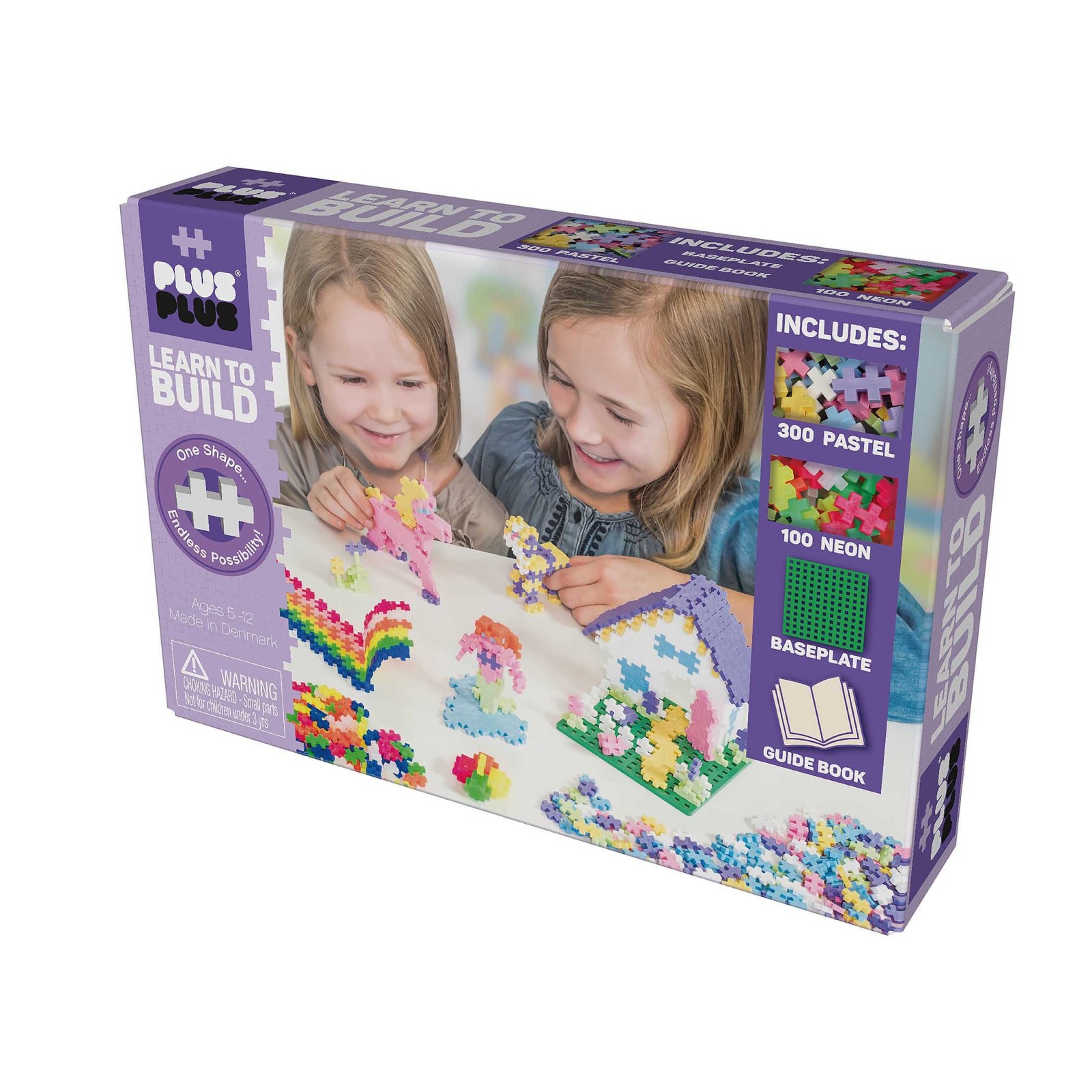 The Plus-Plus Learn To Build set contains everything you need to get started with this unique construction toy. A Guide Book gives step-by step instructions to build flat mosaics and 3D creations - animals, people, buildings and more!