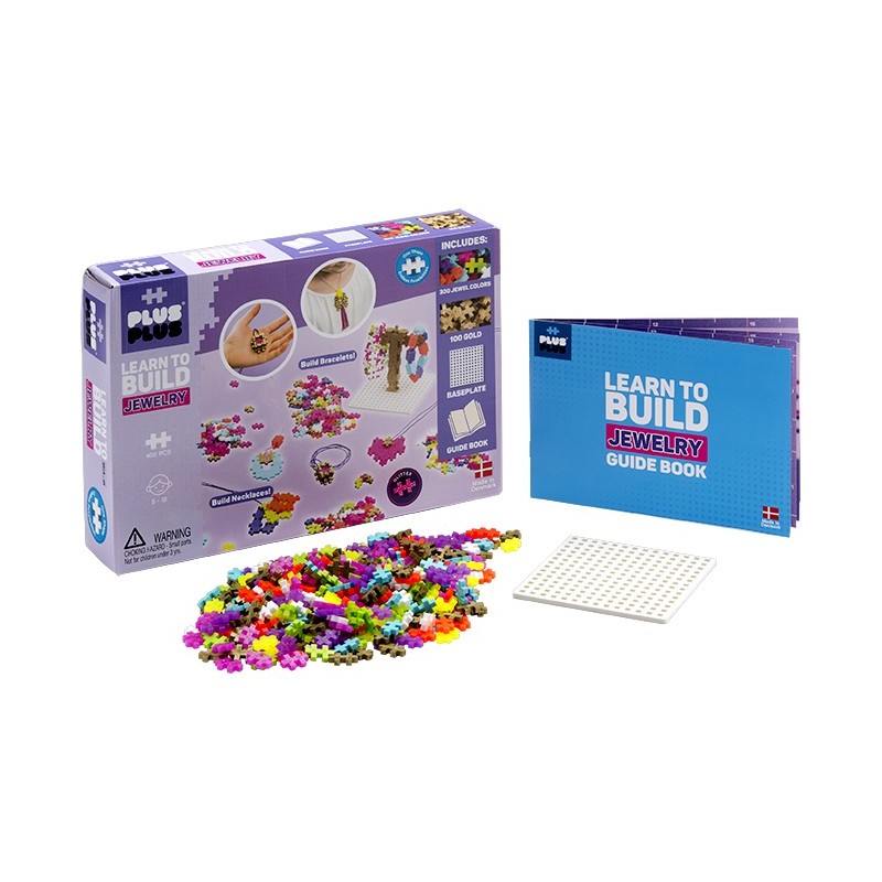 The Plus-Plus Learn To Build set contains everything you need to get started with this unique construction toy. The Guide Book gives step-by step instructions to build unique jewelry for you to wear!