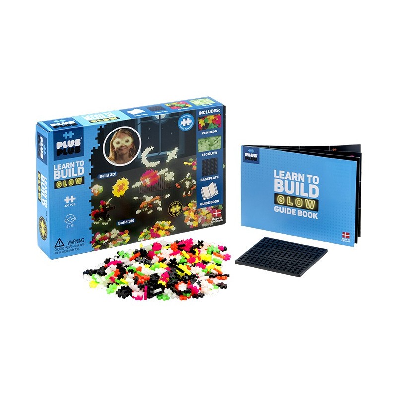 The Plus-Plus Learn To Build set contains everything you need to get started with this unique construction toy. A Guide Book gives step-by-step instructions to build flat mosaics and 3D creations - animals, people, buildings and more using Glow in the Dark pieces!