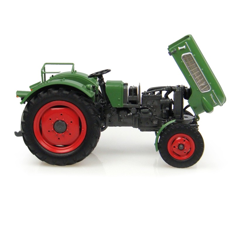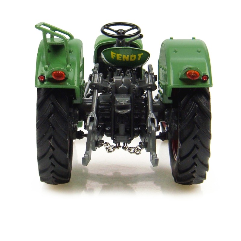 Enhance your farm model collection with this highly detailed 1:32 scale of the Fendt Farmer 2 die-cast tractor from Universal Hobbies. Designed for enthusiasts and collectors alike, this model captures the rugged reliability and iconic styling of a true agricultural classic. Expertly crafted with precision and attention to detail, this 1:32 scale tractor features detailed engine components by opening the hood, a realistic rear hitch assembly, and rubber tires with an orange engraved pattern. The green finish, paired with durable rubber tires and deep treads at the back with an orange engraved pattern, delivers an authentic look and feel that stands out on display. This collectible miniature makes an excellent addition to any farm equipment collection. It is a collectible replica and not intended as a toy for young children.