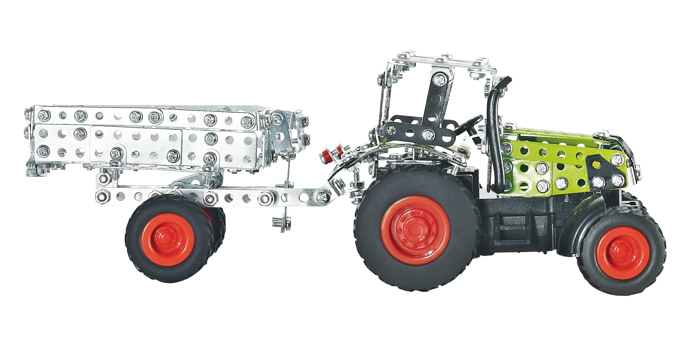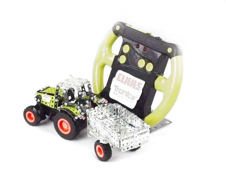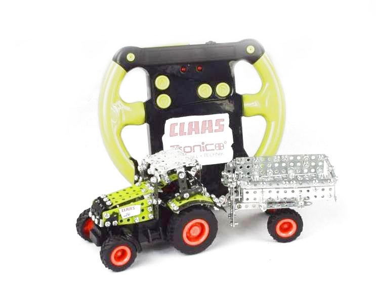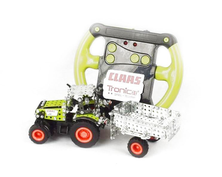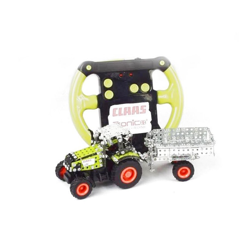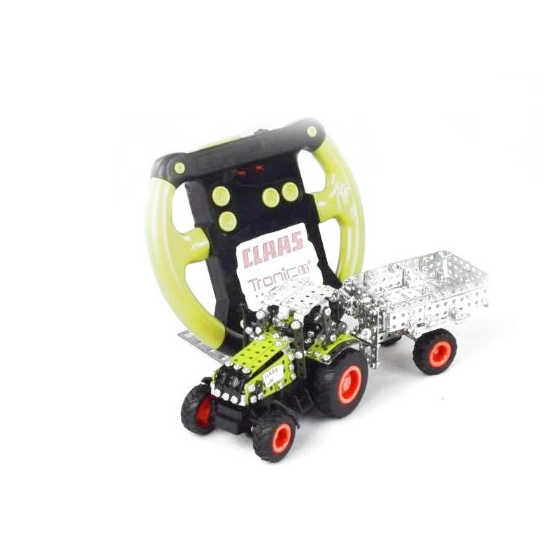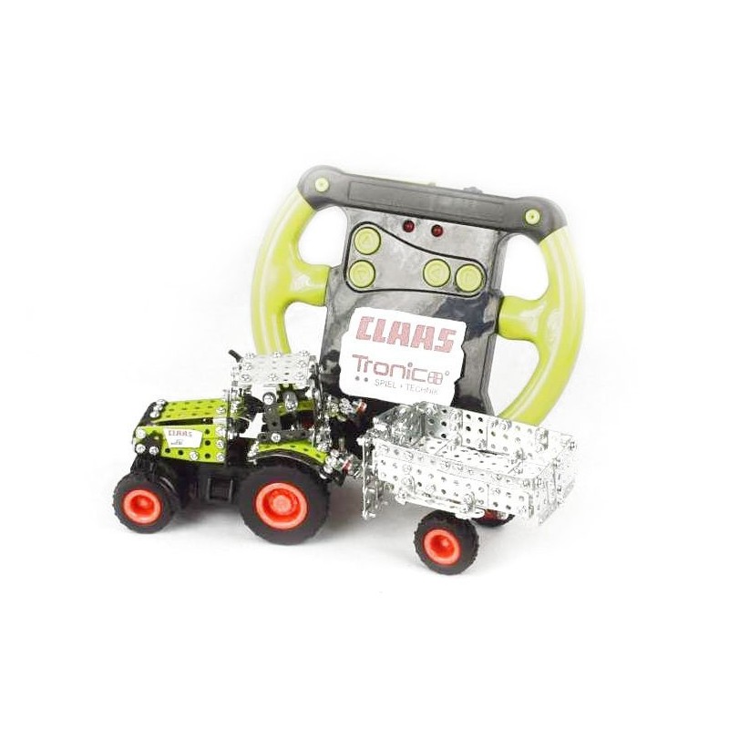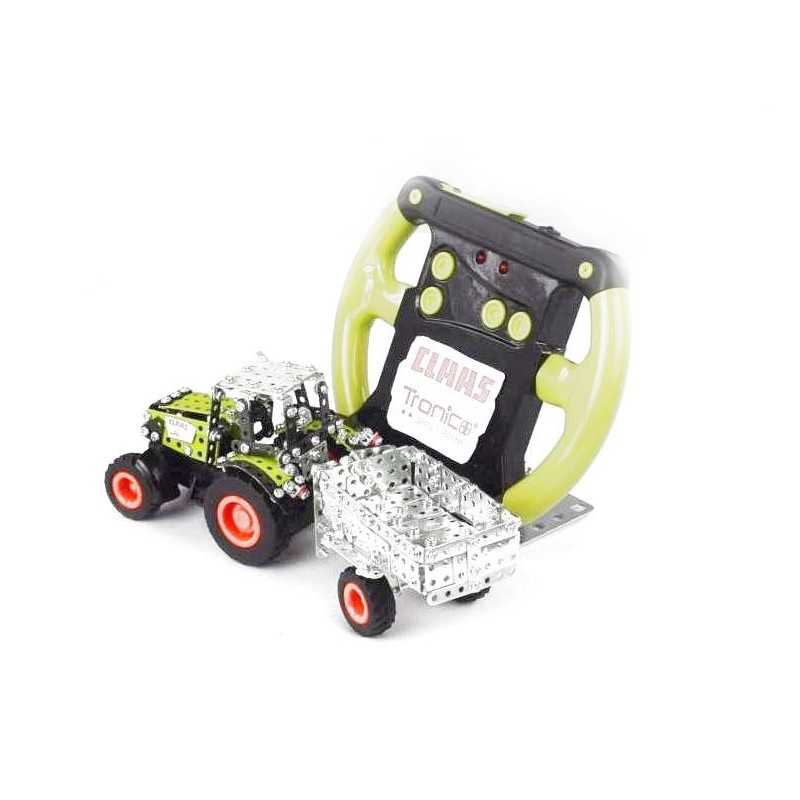 TRONICO Micro Series - the smallest DIY Metal Kit in the world - CLAAS AXION 850 - INFRARED CONTROL SET with LED-lights (white in front, red in back), summary: tractor, scale 1:64, 462 parts, size: ca. 17 x 6 x 6 cm, made of high quality metal and high quality plastic material, free-wheel action, tires with original patterns made of soft plastic, including trailer tow hitch, weight of tractor is 190 grams, build in full details, all parts will only be fixed with screws and locked with nuts, including decals, equipped with tools for assembling, instruction manual with pictures for easy assembling, recommended for age 12 plus, the controller needs 4 x AA batteries (not included), the tractor will be charged at controller, packed in a gift box.
