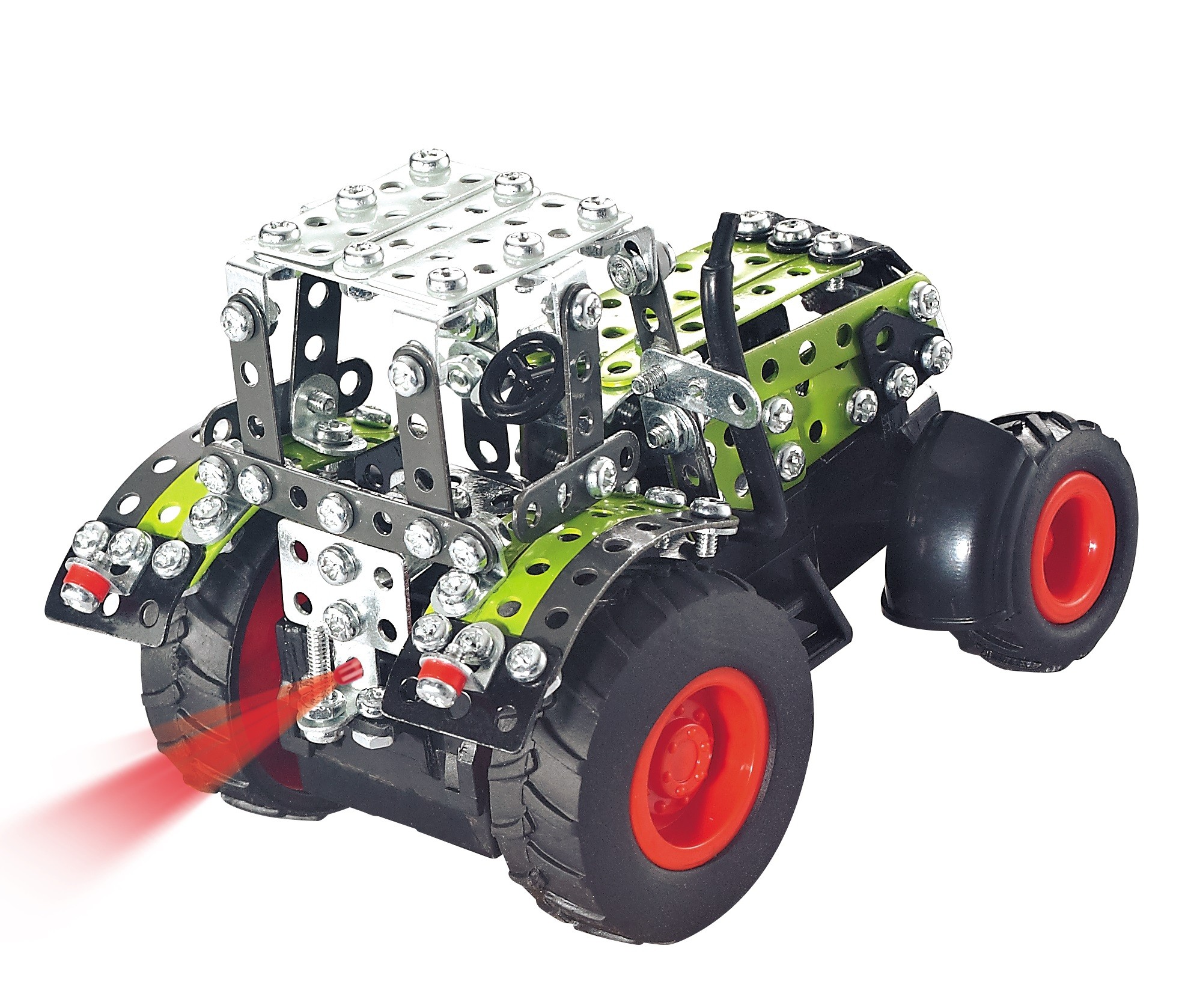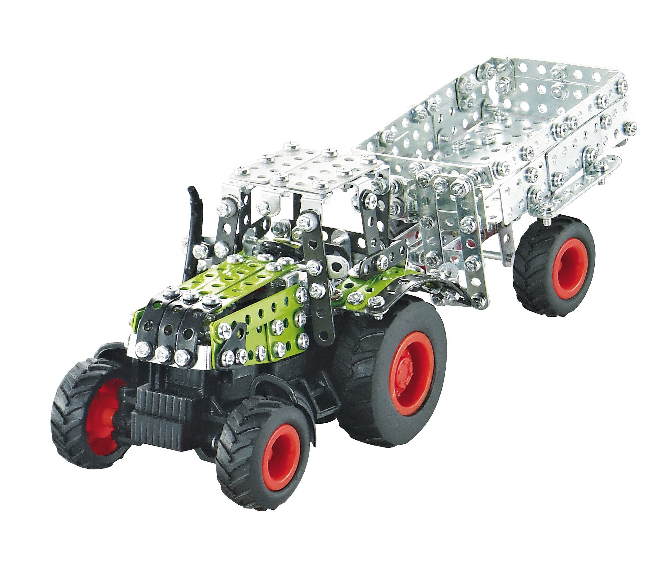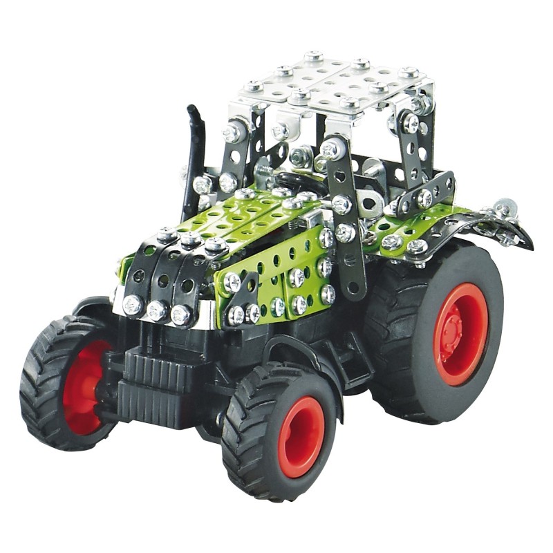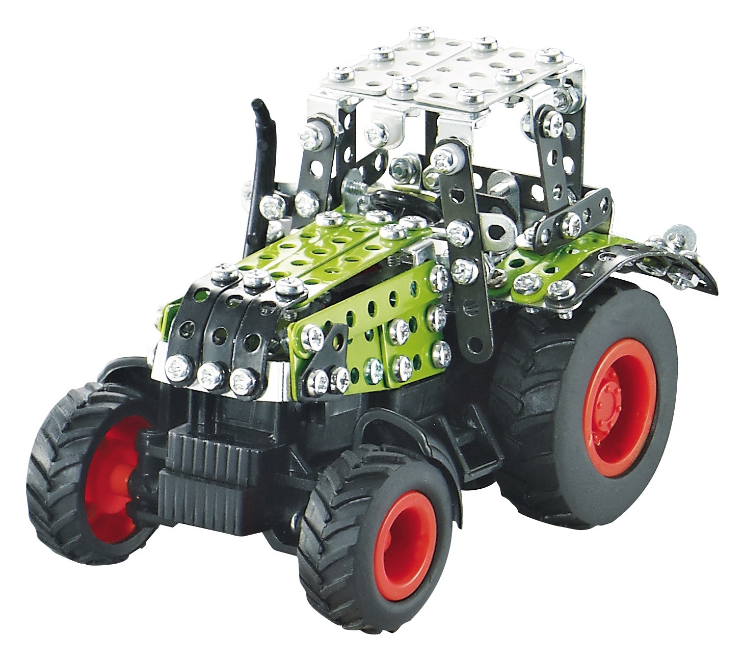 TRONICO Micro Series - the smallest DIY Metal Kit in the world - CLAAS AXION 850 - INFRARED CONTROL SET with LED-lights (white in front, red in back), summary: tractor, scale 1:64, 462 parts, size: ca. 17 x 6 x 6 cm, made of high quality metal and high quality plastic material, free-wheel action, tires with original patterns made of soft plastic, including trailer tow hitch, weight of tractor is 190 grams, build in full details, all parts will only be fixed with screws and locked with nuts, including decals, equipped with tools for assembling, instruction manual with pictures for easy assembling, recommended for age 12 plus, the controller needs 4 x AA batteries (not included), the tractor will be charged at controller, packed in a gift box.