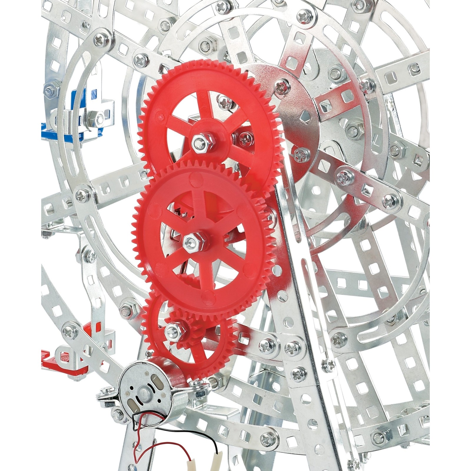 This Ferris Wheel with solar cell drive generate movement with solar energy and his powerful geared motor.This Ferry Wheel is fully functionnel. Now the young or adults builders can discover the world of the engineering.