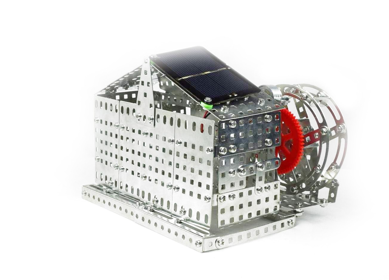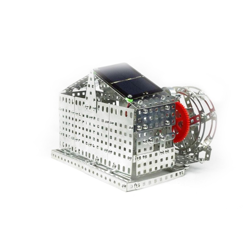 Silver solar powered Water Mill, premium, 625 pcs, fully functional, made of high quality metal and high quality plastic material, Measurements app.: 20 x 15,5 x 15,5 cm, powerful solar cell and engine, weight of water mill app.: 1.1 kg, all parts will be only fixed with screws and locked with nuts, equipped w/tools for assembling, instruction manual w/pictures for easy assembling, recommended for age 8plus, packed in a gift box, from tronico.