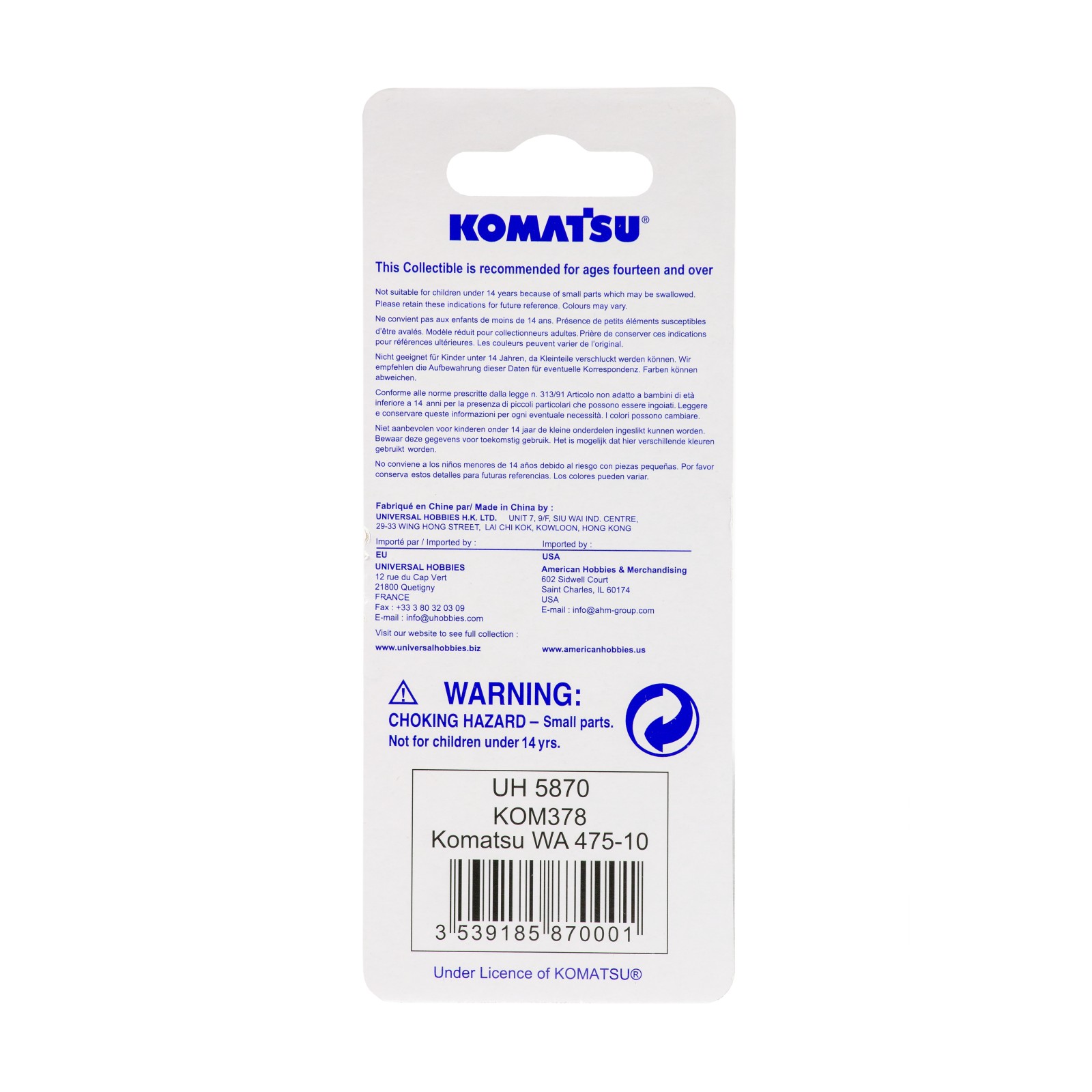 - The Komatsu WA475-10 Wheel Loader features tampo printing, rather than decals, to ensure the highest quality and finest detail for a realistic look.