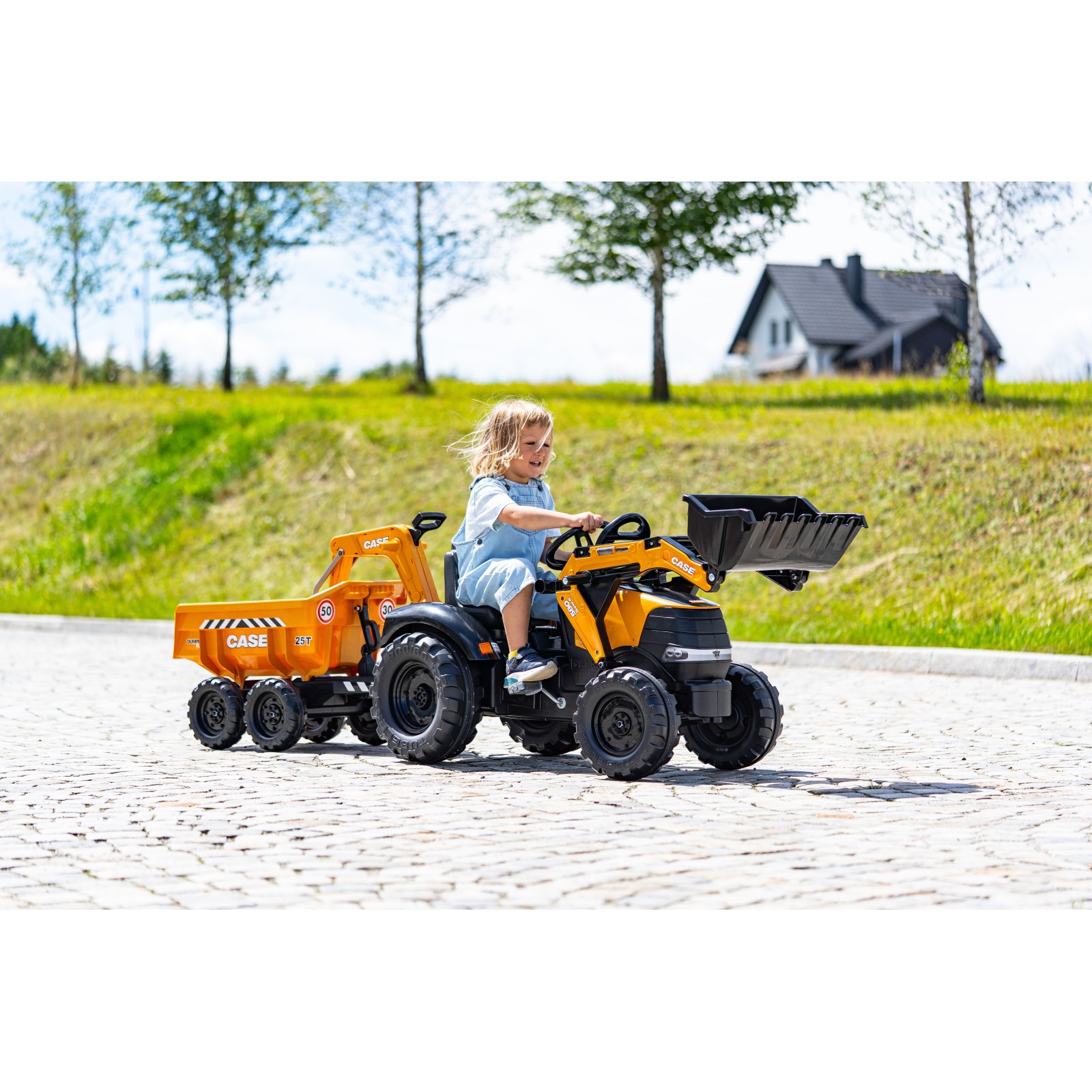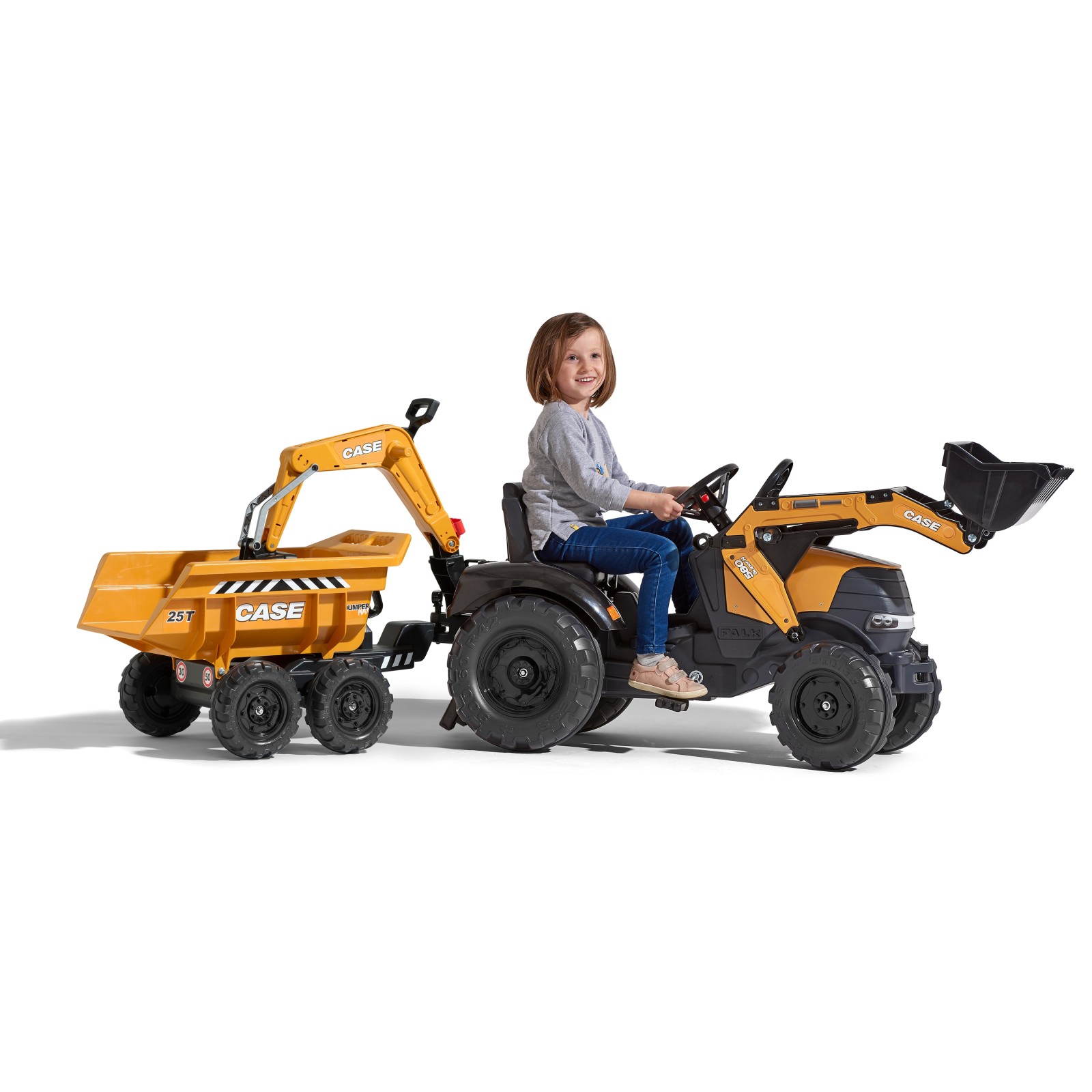 Case CE 580 Super N Pedal Tractor by Falk Ride-On Toy with Front Loader, Rear excavator & Dumper Trailer for Kids Ages 3+ FA997W