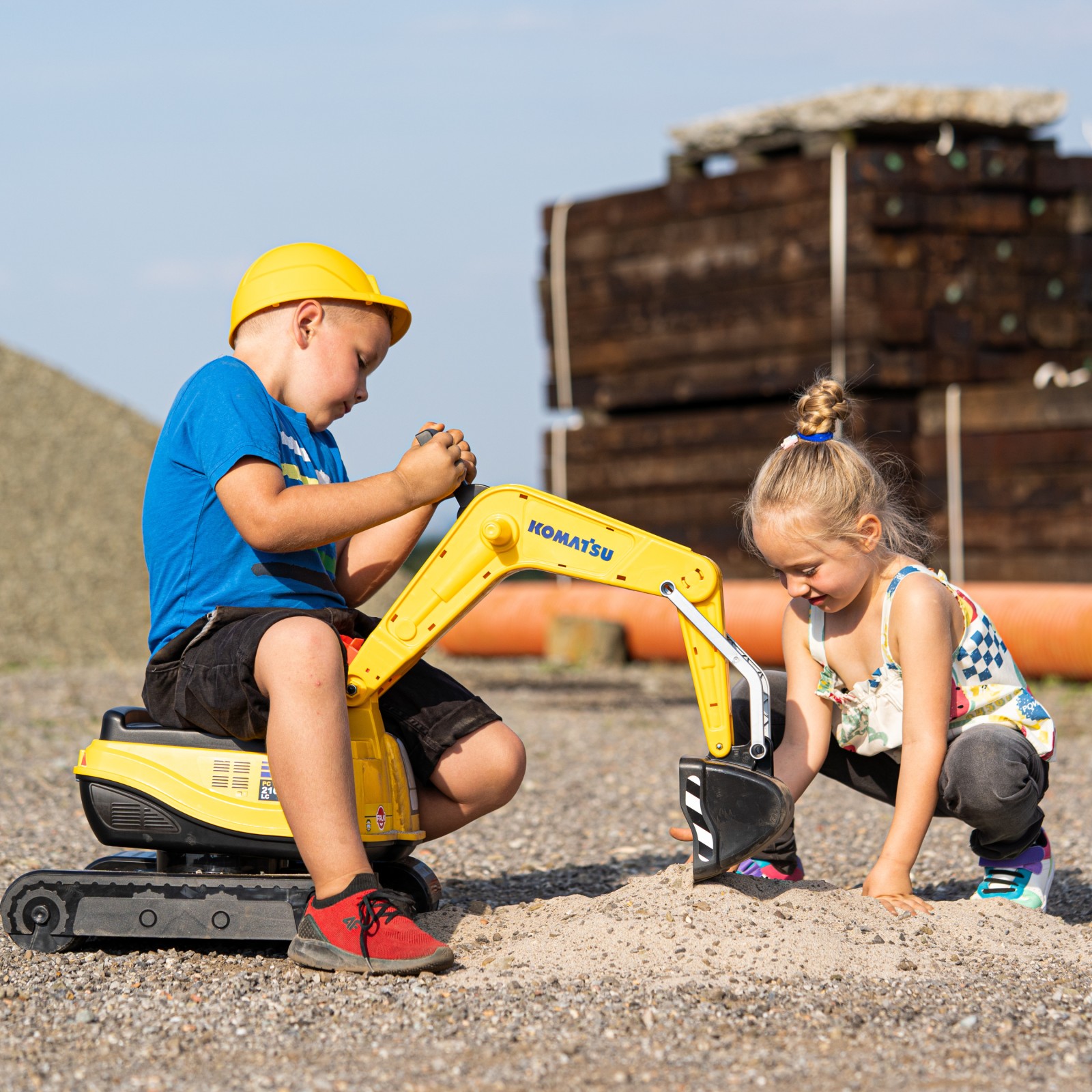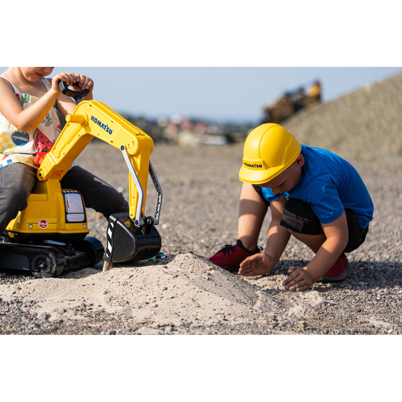 Need a place to stash toys or tools? No problem! This digger features a storage compartment, perfect for holding construction tools or other favorite toys. And with the included kid-sized helmet, your child can suit up like a true construction crew member. This Komatsu digger excavator ride-on toy promises endless hours of imaginative play and adventure. Bring the excitement of the construction site into your backyard!