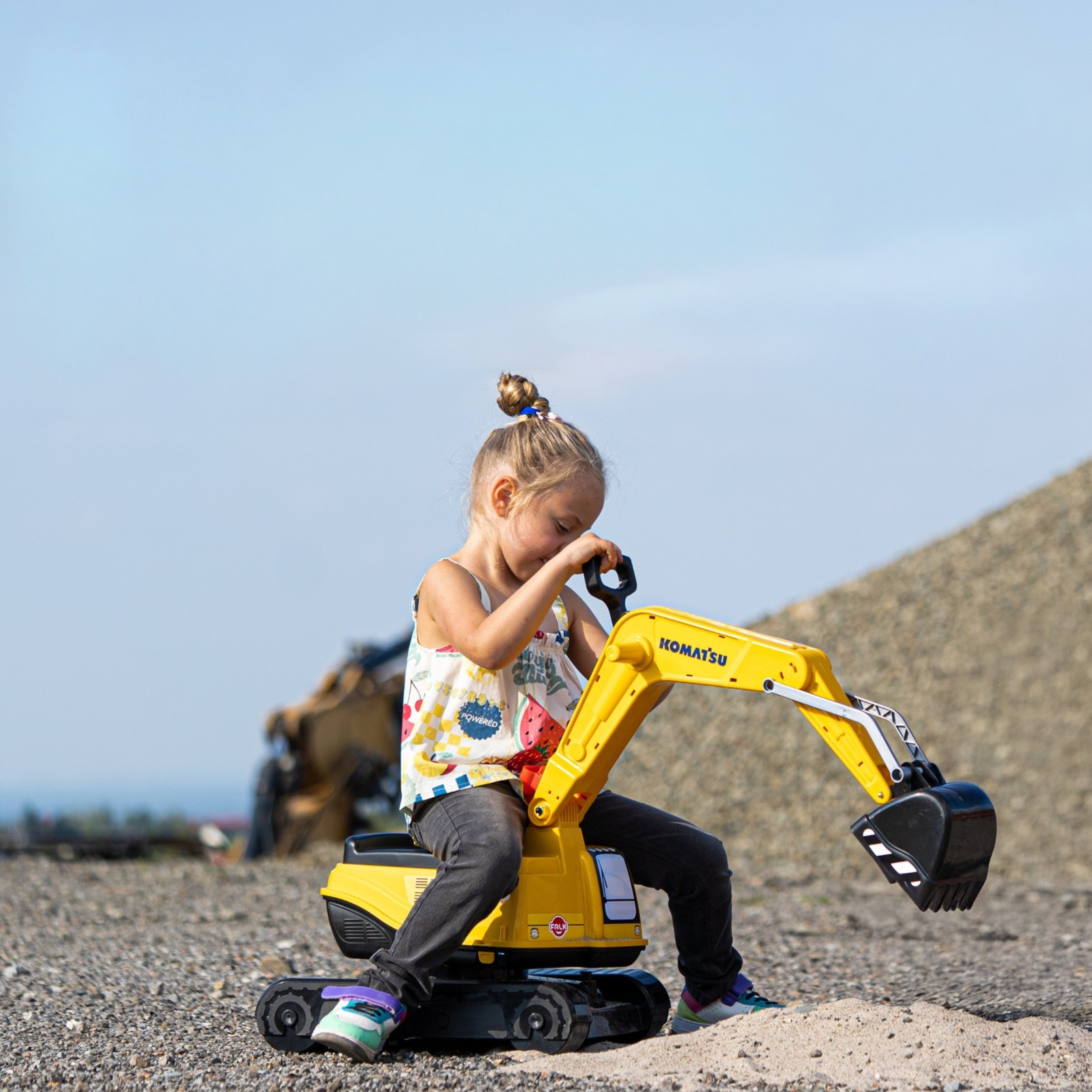 Let your kid take control of the job site with the ultimate Rotatable Digger Ride-On Toy! Our licensed Komatsu excavator ride-on Toy is designed to bring big construction projects to your little builder.