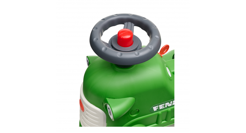 Let your little one explore the world with this Officially Licensed Fendt Tractor 2-in-1 Toddler Push Walker Ride-On! Designed to support early walking skills and promote active play, this multifunctional toy transforms from a sturdy push walker into an exciting ride-on vehicle. The interactive squeak horn and key sounds add a layer of sensory fun, giving toddlers a realistic "tractor" experience as they honk and roll through indoor or outdoor adventures. Under the seat, a hidden storage compartment gives your toddler a special place to stash their favorite stuffed animal. Whether they’re taking their first steps or zooming around in full farmer mode, this walker push ride-on encourages balance, coordination, and imaginative play. Thanks to the directional steering wheel, which offers your little one a sense of freedom with excellent stability. The tractor's thoughtful design includes charming details like friendly "eyes" on the front, making it a perfect companion for your toddler's early adventures.