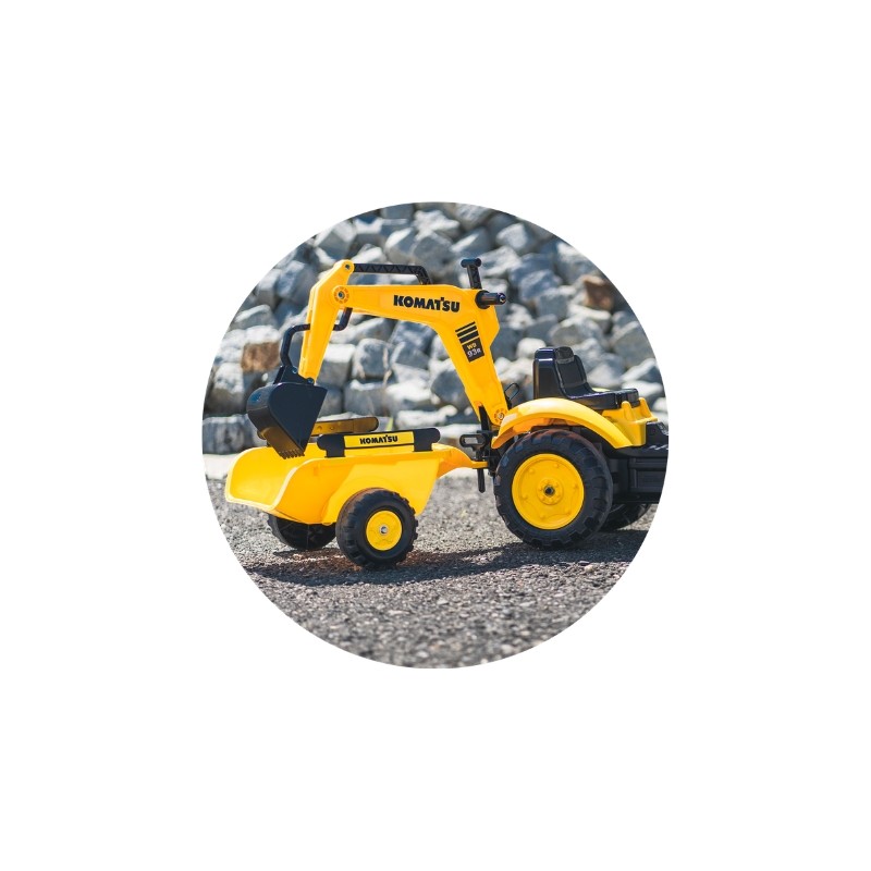 - 3-in1 Functionality: This officially licensed Komatsu brings a true construction site feeling, featuring signature yellow coloring and authentic decals that kids will love. This tractor is full of accessories with a working front loader, rear excavator, and detachable trailer.