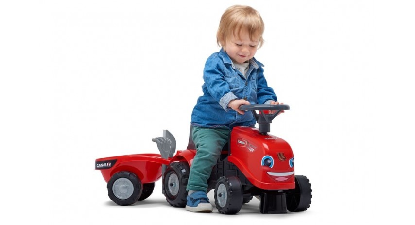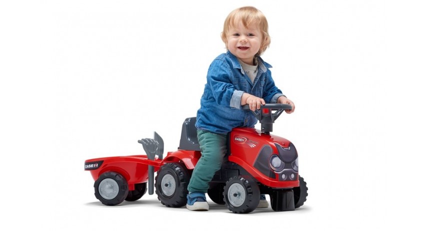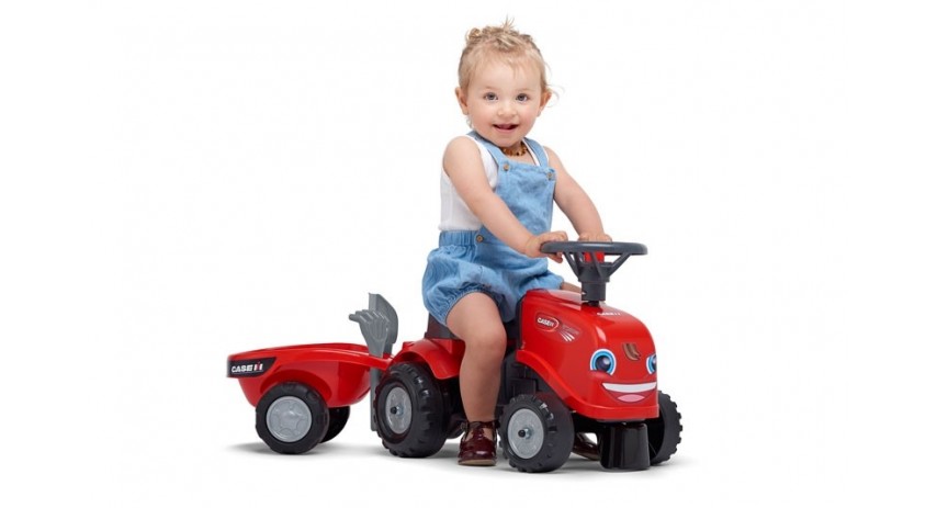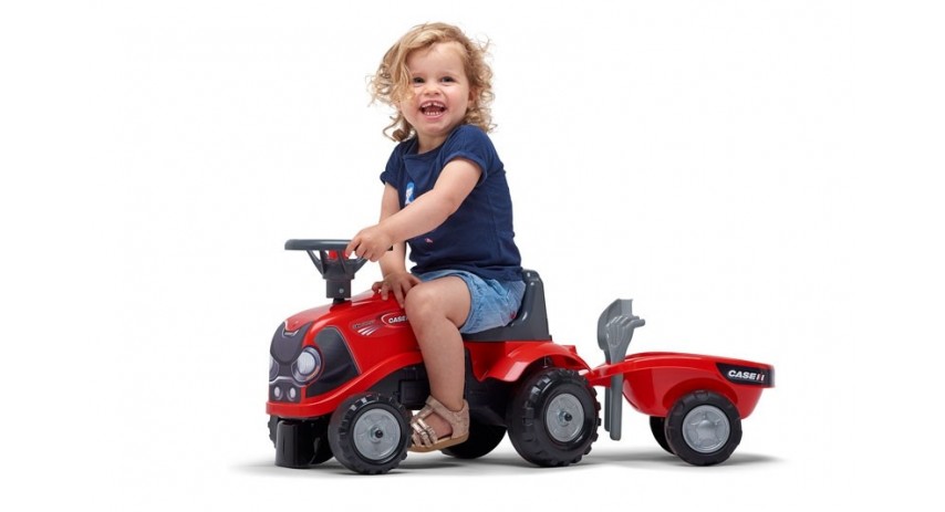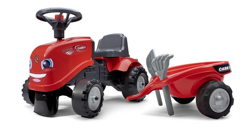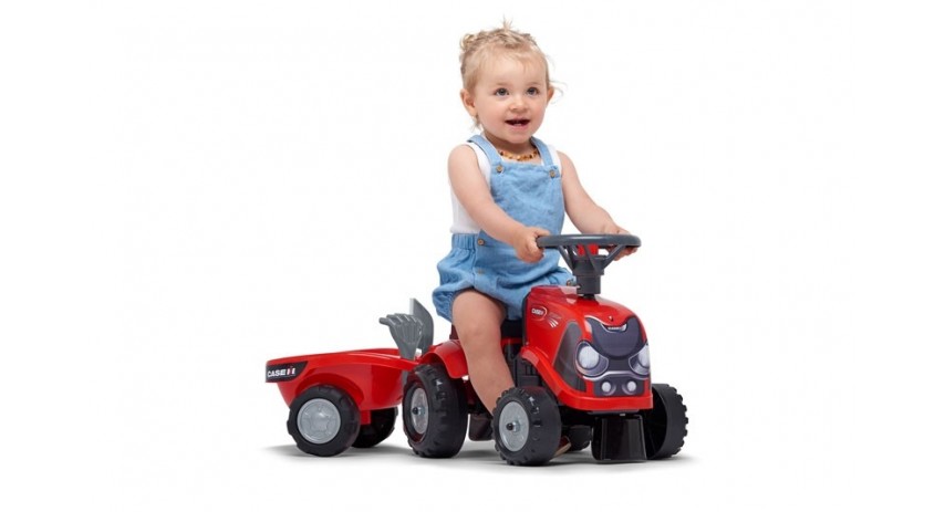 Falk Massey Ferguson Tractor with trailer, Rake and Shovel, 2 sets of stickers, Ride-on and Push-along +1.5 years FA241CMake playtime unforgettable with our Officially Licensed Baby Push Ride-On Case IH Tractor, featuring a detachable trailer, rake, and shovel set. Designed for toddlers ages 1 to 3, this tractor will keep toddlers active and engaged while they're having fun. The realistic licensed design gives kids the thrill of driving their very own vehicle, while the removable trailer lets them load up and transport toys or sands. Whether they're pretending to work in the yard or going on a make-believe road trip, this ride-on turns any backyard into a world of adventure.