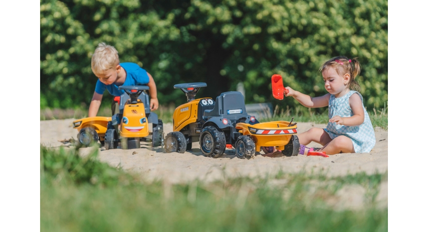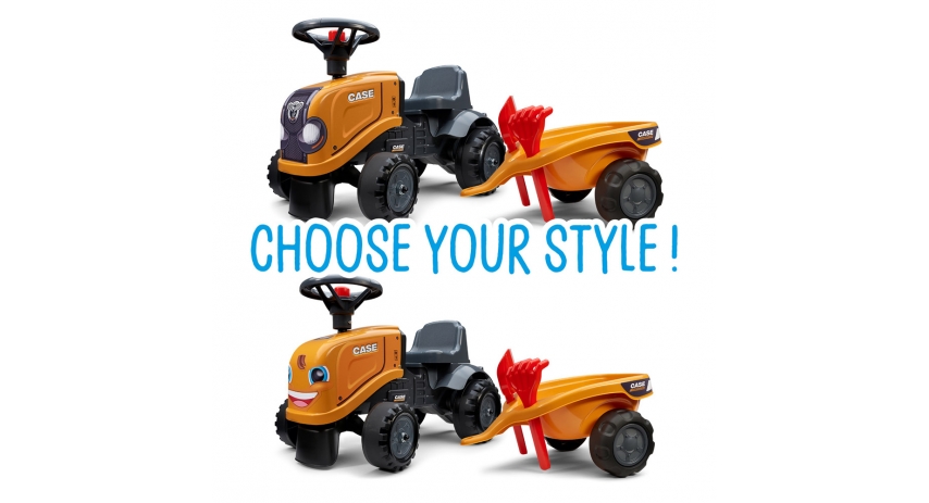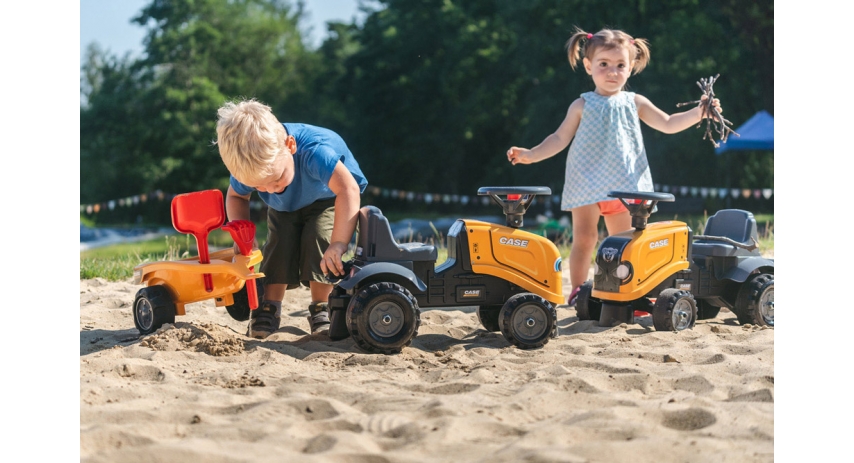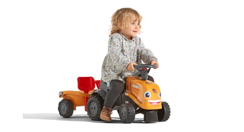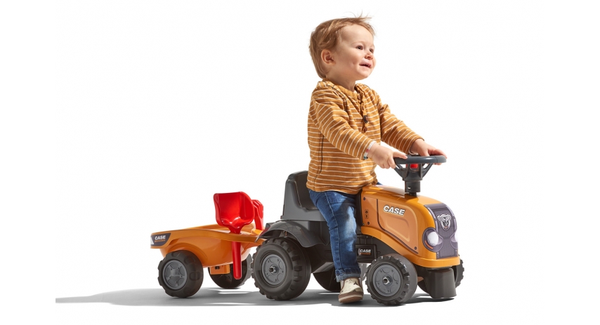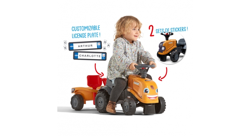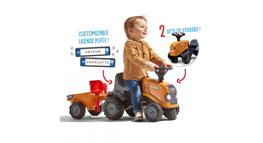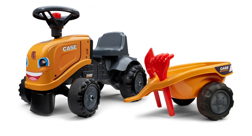 Make playtime unforgettable with our Officially Licensed Baby Push Ride-On Case CE Tractor, featuring a detachable trailer, rake, and shovel set. Designed for toddlers ages 1 to 3, this tractor will keep toddlers active and engaged while they're having fun. The realistic licensed design gives kids the thrill of driving their very own vehicle, while the removable trailer lets them load up and transport toys or sands. Whether they're pretending to work in the yard or going on a make-believe road trip, this ride-on turns any backyard into a world of adventure.