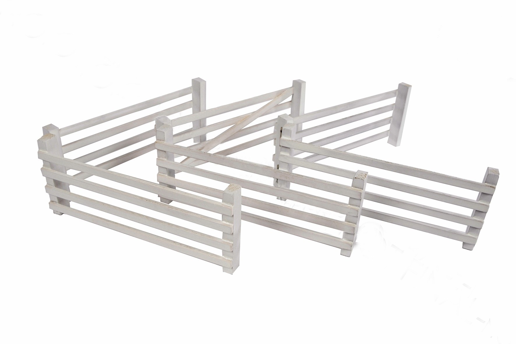 The wooden fences set, 1:24 scale in the white color, is composed of 3 pieces of double fences to build a corral for all animals. Here the animals can graze cheerfully and have enough run. Suitable for Boys and Girls to play indoor from 3 years old and up.