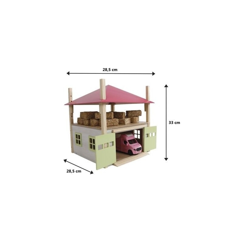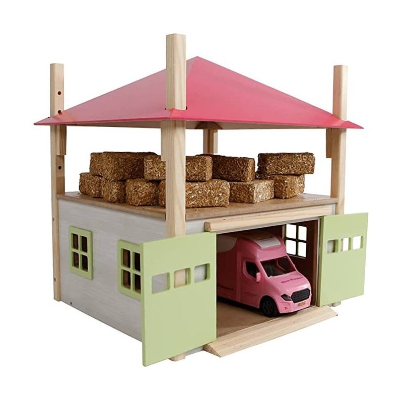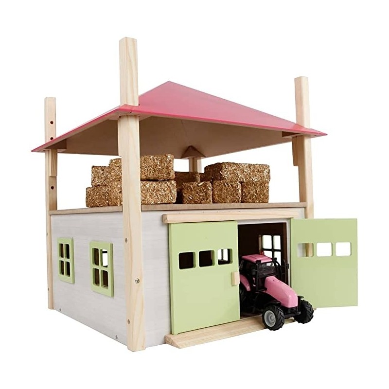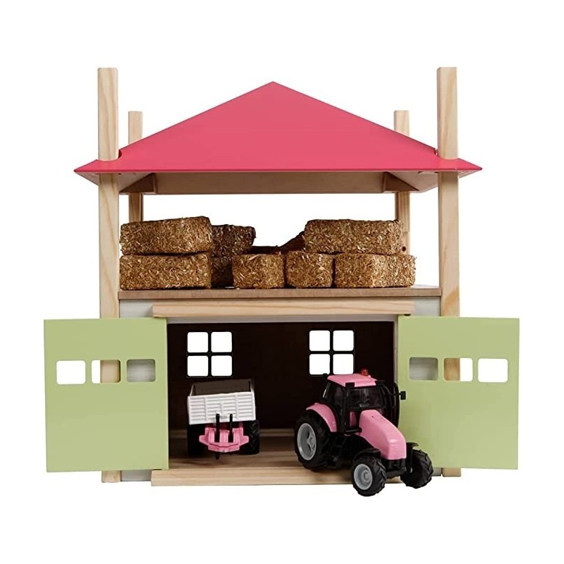 Kids Globe 1:32 Scale Hay Barn with Loft and Heigh adjustable roof - Pink KG610085