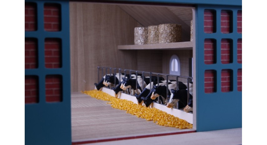 Step into a world of imaginative farm play with this meticulously crafted 1:32 scale wooden farmhouse and cow stable. The charming farmhouse features a classic red brick exterior, complete with a door and realistic windows. The front opens fully, providing easy access to the space inside, including a staircase that leads up to the attic. Inside the cow stable, you’ll find spacious cattle stalls with metal feeding rails, a hayloft storage area, and sliding doors that allow tractors and trailers to enter with ease. The open design by lifting up the roof provides full visibility for convenient access, making it perfect for arranging cows, farm equipment, and accessories. Crafted with durable wood, this farmhouse with the cow stable attached provides authentic finishes. This barn is ideal for collectors and young farm enthusiasts alike, offering a perfect combination of durability, realism, and interactive play. Compatible with 1:32 scale tractors, trailers, and animal figurines, this barn creates the ultimate farm experience.