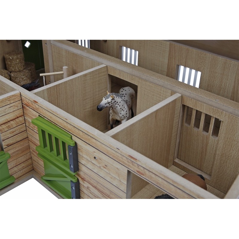 Kids Globe 1:24 Scale Wooden Horse stable with 4 boxes, storage and wash box KG610211